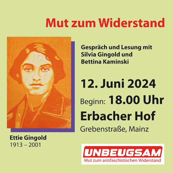 18.01.2024, 18 Uhr, Gedenkstätte KZ Osthofen:S´brent! briderlekh, s´brent! Shteyt nit, brider, lesht dos fayer – Gedenken heißt antifaschistisch Handeln >mehr - 28.01.2024, 15 Uhr, Waldfriedhof MZ-Mombach: Gedenkveranstaltung an den Mahnmalen auf dem Mombacher Waldfriedhof >mehr