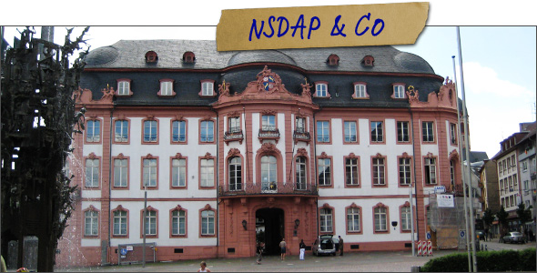 Der ehemalige Sitz der französischen Militärregierung, das Gouvernementsgebäude wurde am 20. April 1933 feierlich von der Stadt Mainz an die NSDAP übergeben.